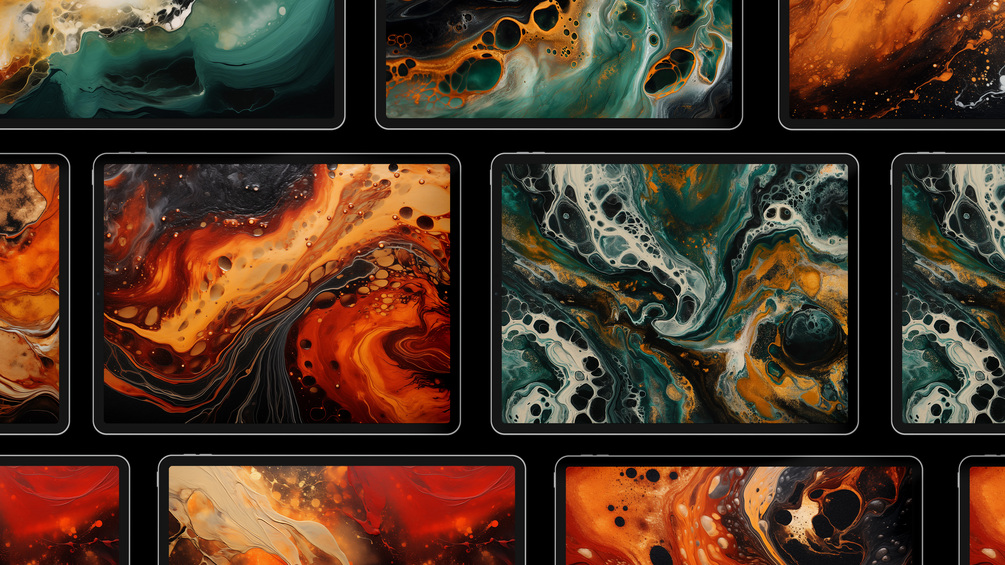 Emerald Elegance wallpapers showcase the smooth and rich color of emerald in a fluid formation style. Inferno Flames wallpapers capture the intensity and contrast of black flame in an abstract oil painting technique.
